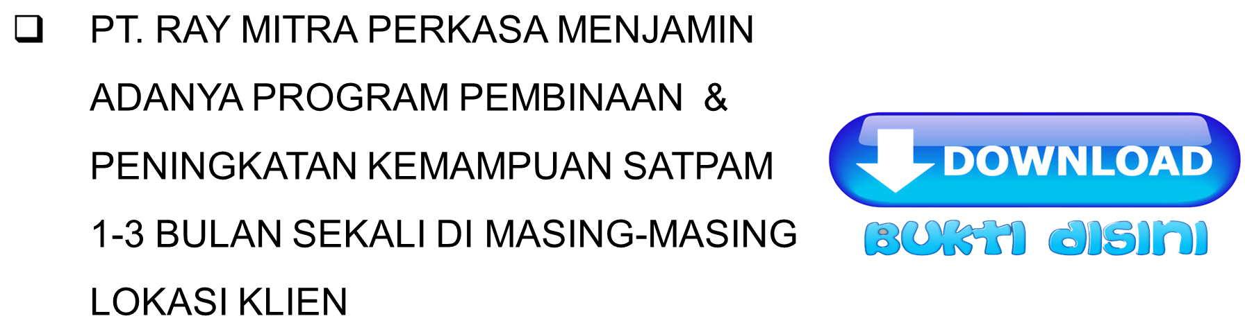 PT RAY MITRA PERKASA perusahaan jasa penyedia tenaga kerja (Outsourcing) khususnya tenaga satuan pengamanan (Satpam), tenaga kebersihan (Cleaning Service) yang berkapabilitas. Terpercaya dan berkomitmen tinggi serta memiliki flexibelitas dan dapat menjadi team work yang dapat diandalkan.